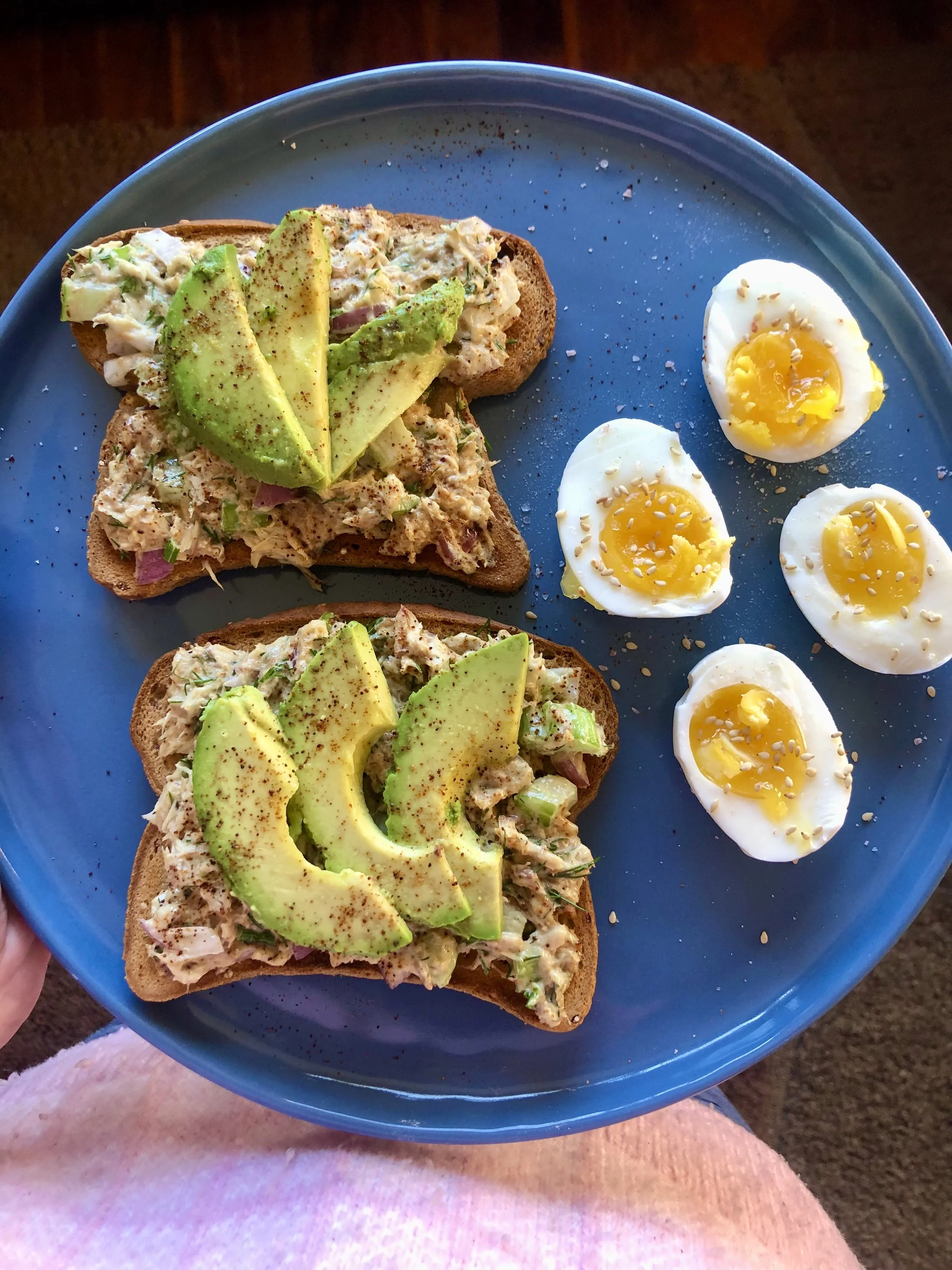 Assembly: Spread mackerel salad on toast, top with avocado slices, eggs, and a sprinkle of sesame seeds for extra healthy fats!