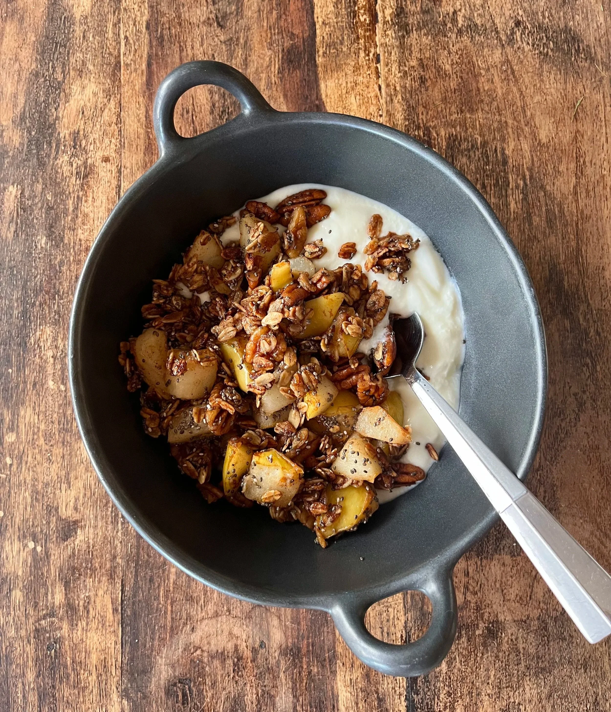 Pear & Pecan Stovetop Crumble with Yogurt